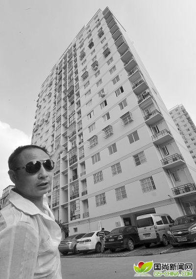 图为十里和府小区3栋经适房外景,居民指认“胶囊房”所在楼层。黄经理说,在打电话做...