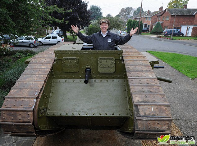 据英国《每日邮报》10月6日报道,英国牛津郡57岁的安东尼是一个军事爱好者,为了纪念第一次世界大战,他在自己的房子外面放置了一个“一战”时期坦克的复制品。这辆坦克长21英尺,国尚新闻网,宽13英尺,重量超过6吨。